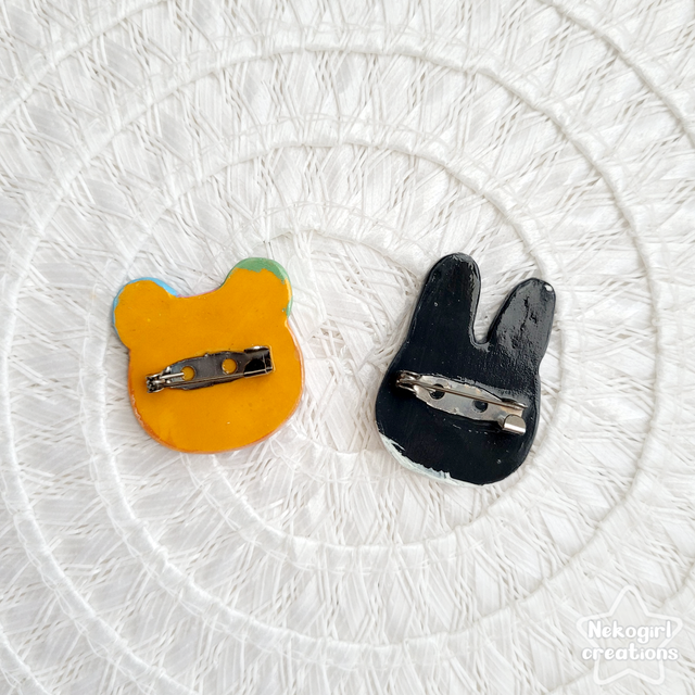 Broches originales 100% faites-main en pâte auto-durcissante et peintes à la main, représentant divers personnages. ♡