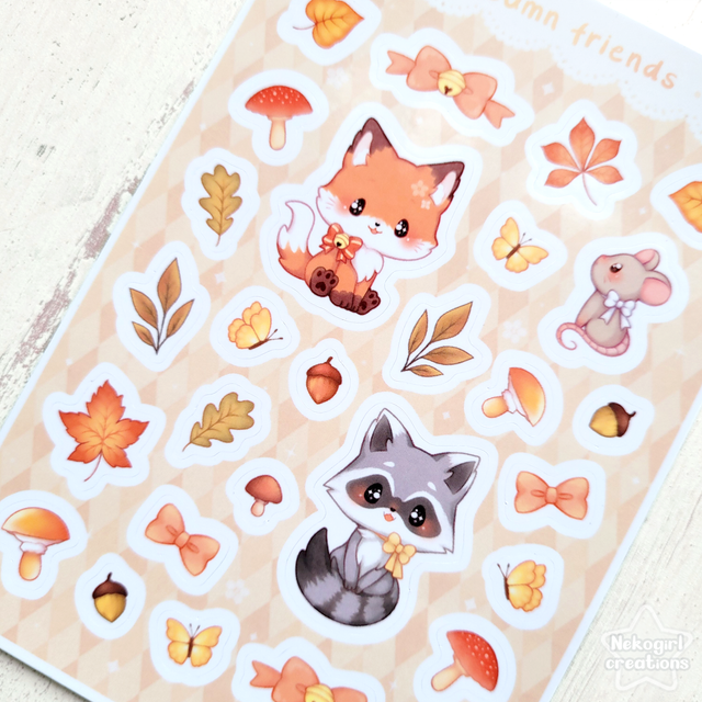 Feuille d'autocollants sur le thème de l'automne et des amis de la forêt, il y a 28 petits autocollants en tout ! ✿ Ils sont résistants à l’eau et peuvent être utilisés pour décorer votre carnet, une lettre, ou être collés sur n'importe quelle surface (ordinateur portable, téléphone, carnet, etc...) !