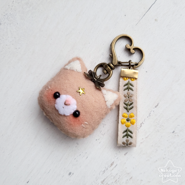 Porte-clé en feutrine fait-main - Chat brun
