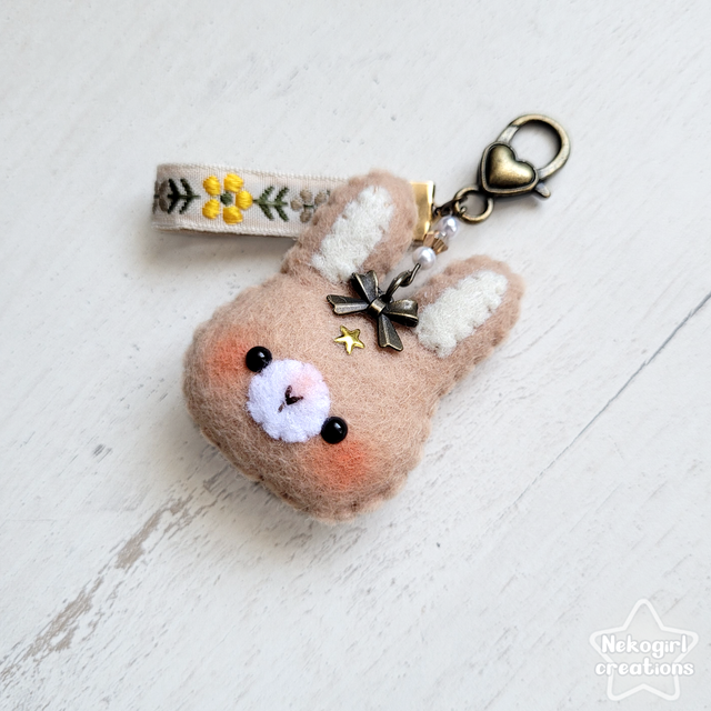 Petit porte-clé en feutrine d’un lapin brun, designé par moi, entièrement fait et cousu à la main. ♡ Parfait pour accompagner vos clés, orner votre sac ou être accroché où vous le souhaitez.