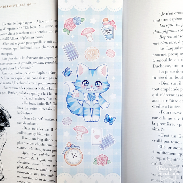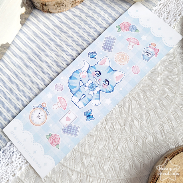 Marque page Recto-verso du chat du Cheshire d'Alice au Pays des merveilles, dessiné dans mon propre style. ♡ Imprimé sur du papier 400gsm.